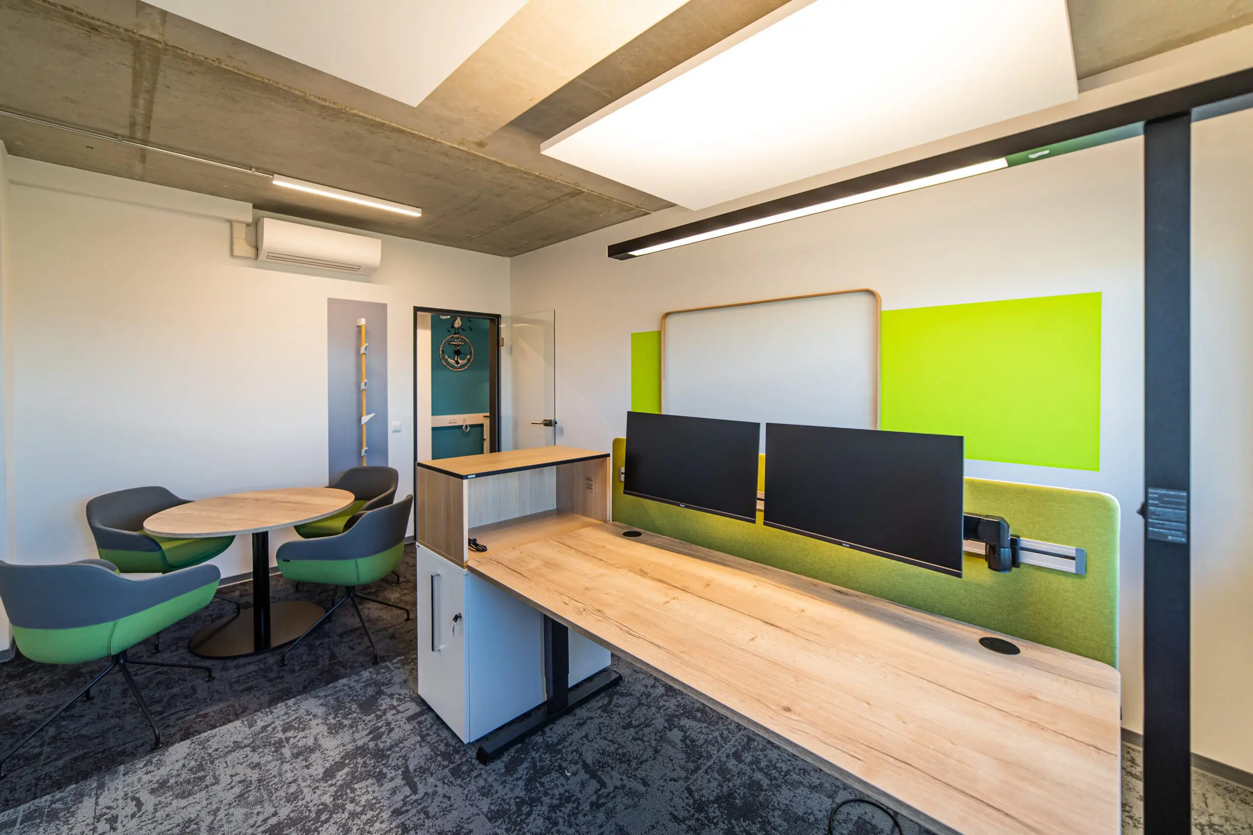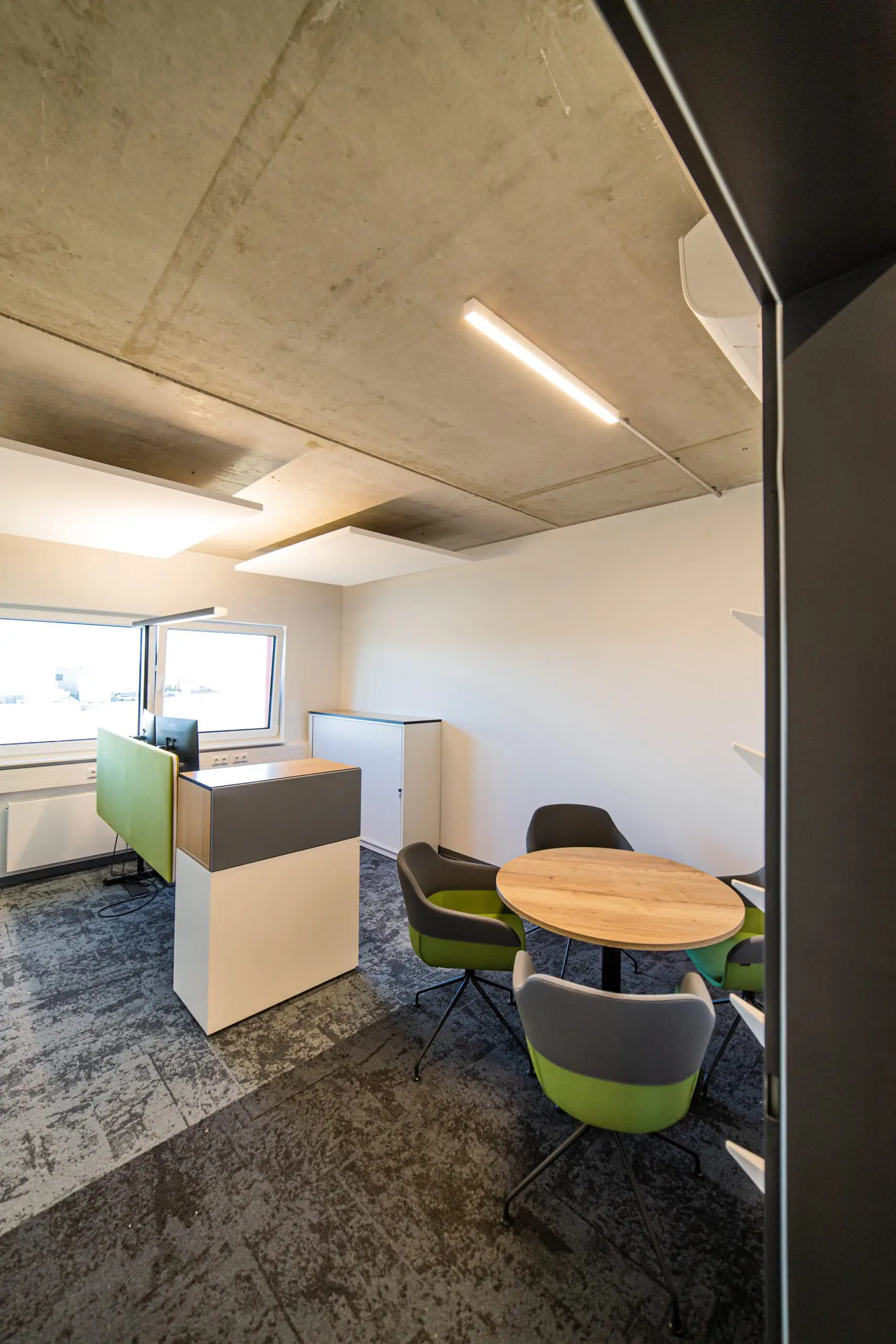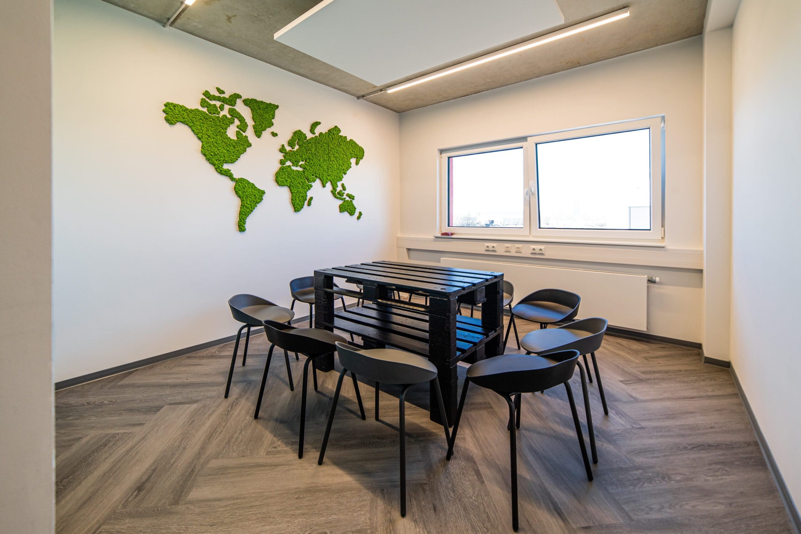 Das Design ist Ausdruck der Unternehmenskultur: Selbstbewusst, aber zugänglich. Natürliche Materialien und Akzente wie begrünte Moosflächen holen die Natur in den Innenraum und schaffen eine angenehme Ruhe. Ein modernes, dynamisch steuerbares Lichtkonzept unterstützt nicht nur die Orientierung, sondern auch die Stimmung – von konzentrierter Arbeitsatmosphäre bis zum offenen Austausch.